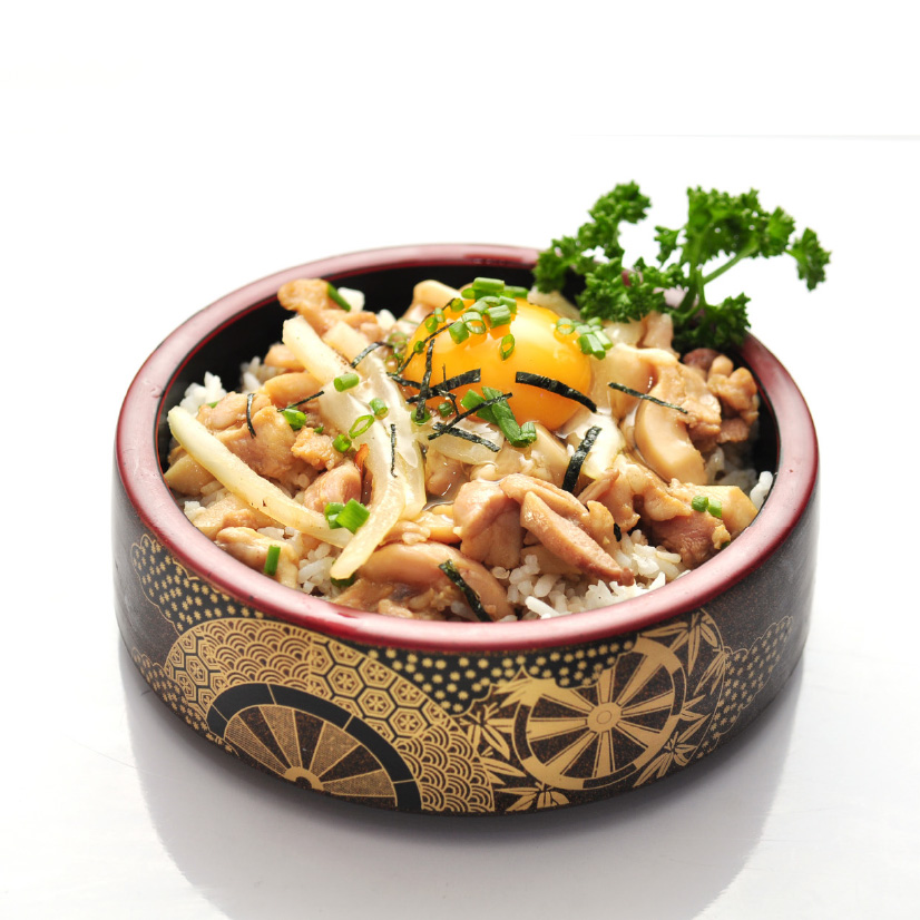 Oyako Don(poulet cuit à la sauce de soja posésur un bol de riz)