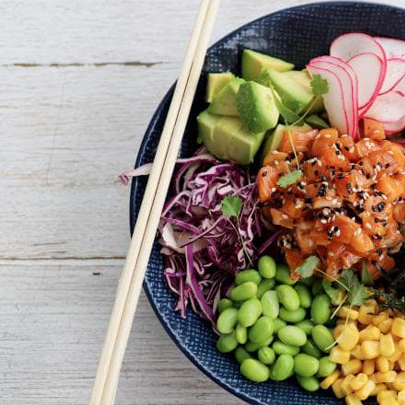 Chirachi Poké: avocat,tomate cerise, wakame,ananas, saumon)sauce Yuzu Miso